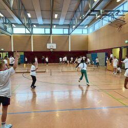 Ein sportliches Highlight fand am Mittwoch statt: das große Völkerballturnier im Rahmen der Projektwoche Vielfalt leben. Jede Klasse stellte zwei Teams, die gegeneinander antraten. Am Ende durften die Siegerteams sogar gegen das Klassenlehrertandem spielen – das Lehrerteam konnte sich durchsetzen. Die Gewinnerklasse des Turniers war die Klasse Jupiter. Alle hatten großen Spaß und erlebten einen tollen Tag voller Teamgeist und Fairness.